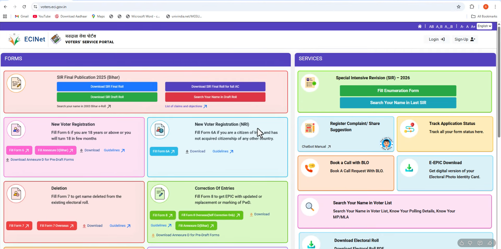 यदि आप इन शर्तों को पूरा नहीं करते हैं, तो आपको ऑफलाइन ही फॉर्म भरना चाहिए और बीएलओ से संपर्क करना चाहिए।