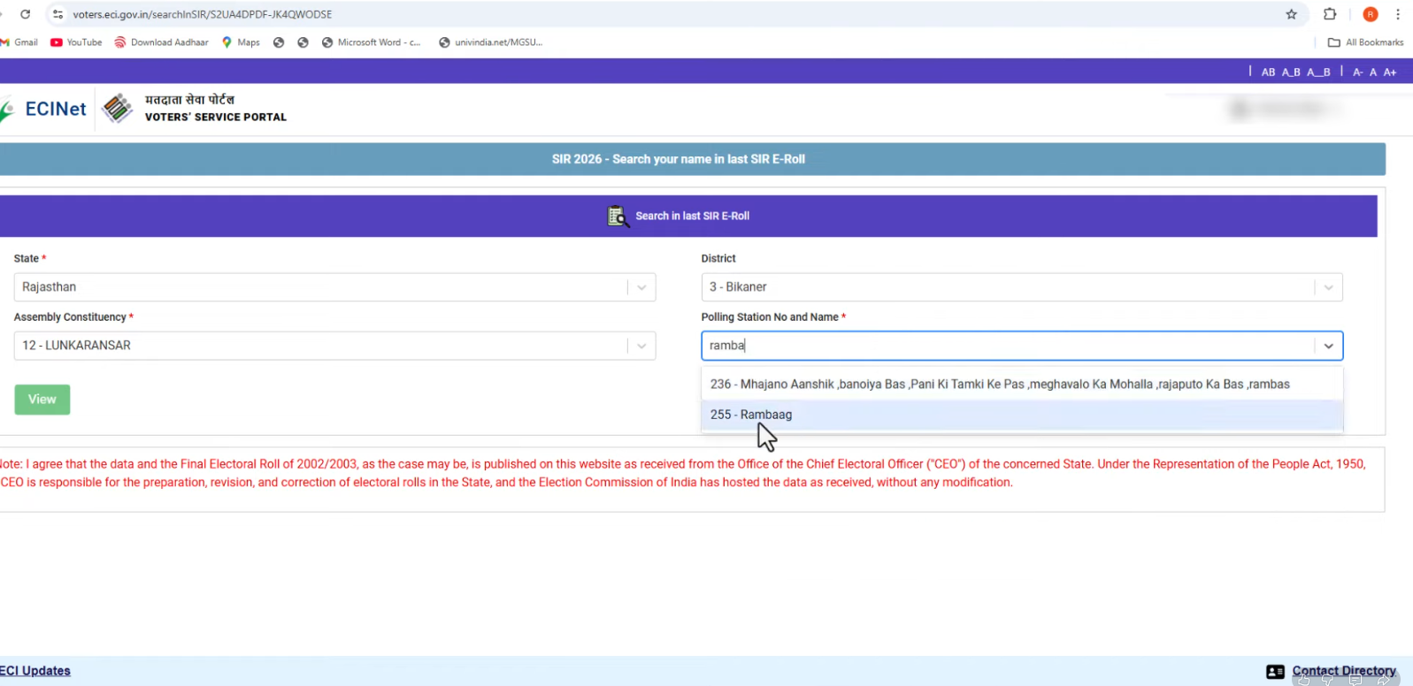 “व्यू (View)” पर क्लिक करें। आपके पोलिंग बूथ की पुरानी वोटर लिस्ट दिखाई देगी।